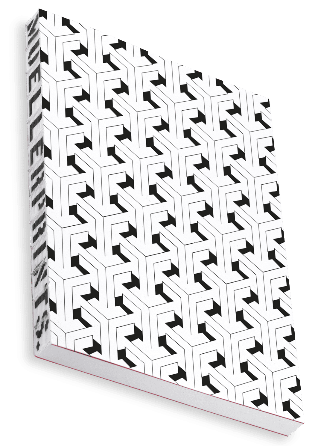 Alle Notizhefte sind von uns selbst gestaltet, gedruckt und in Handarbeit gebunden mit viel Liebe zum Detail. Das matte Recyclingpapier mit feiner Textur sorgt für angenehmes Schreiben und Skizzieren. Um den Inhalt liegt ein Matelbogen aus rot durchgefärbtem Papier, was einen dezenten, farbigen Kontrast zu dem ansonsten absichtlich, schwarz-weiß gehaltenen Design setzt. Das mit Singerstich-Heftung gebundene Heft ist sehr strapazierfähig, auch bei intensivem Gebrauch.