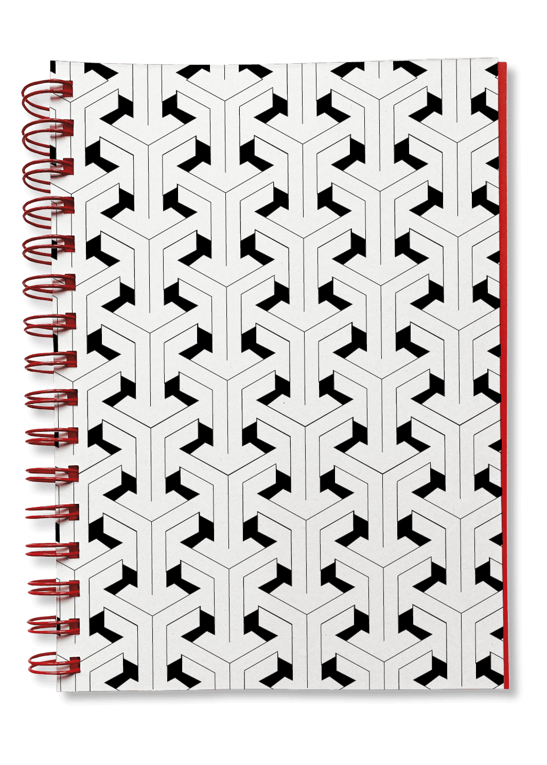 Wire-O-Bindung mit roter Spirale.