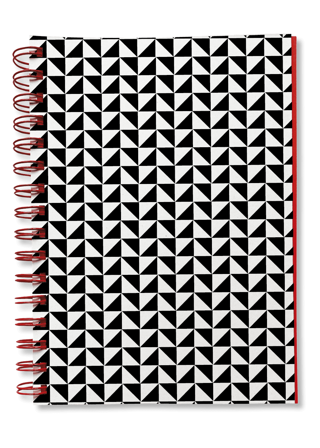 Wire-O-Bindung mit roter Spirale.