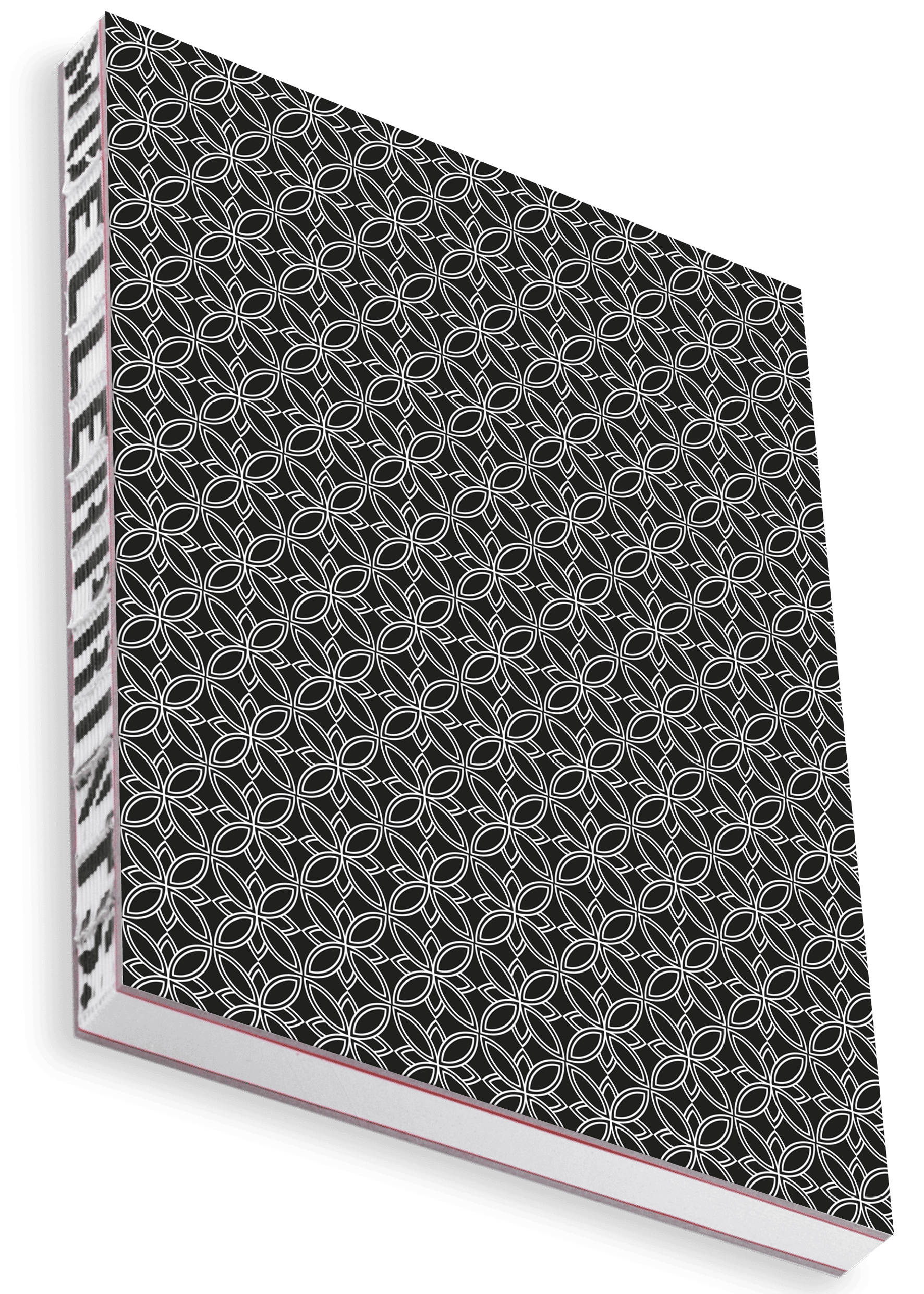 Alle Notizhefte sind von uns selbst gestaltet, gedruckt und in Handarbeit gebunden mit viel Liebe zum Detail. Das matte Recyclingpapier mit feiner Textur sorgt für angenehmes Schreiben und Skizzieren. Um den Inhalt liegt ein Matelbogen aus rot durchgefärbtem Papier, was einen dezenten, farbigen Kontrast zu dem ansonsten absichtlich, schwarz-weiß gehaltenen Design setzt. Das mit Singerstich-Heftung gebundene Heft ist sehr strapazierfähig, auch bei intensivem Gebrauch.