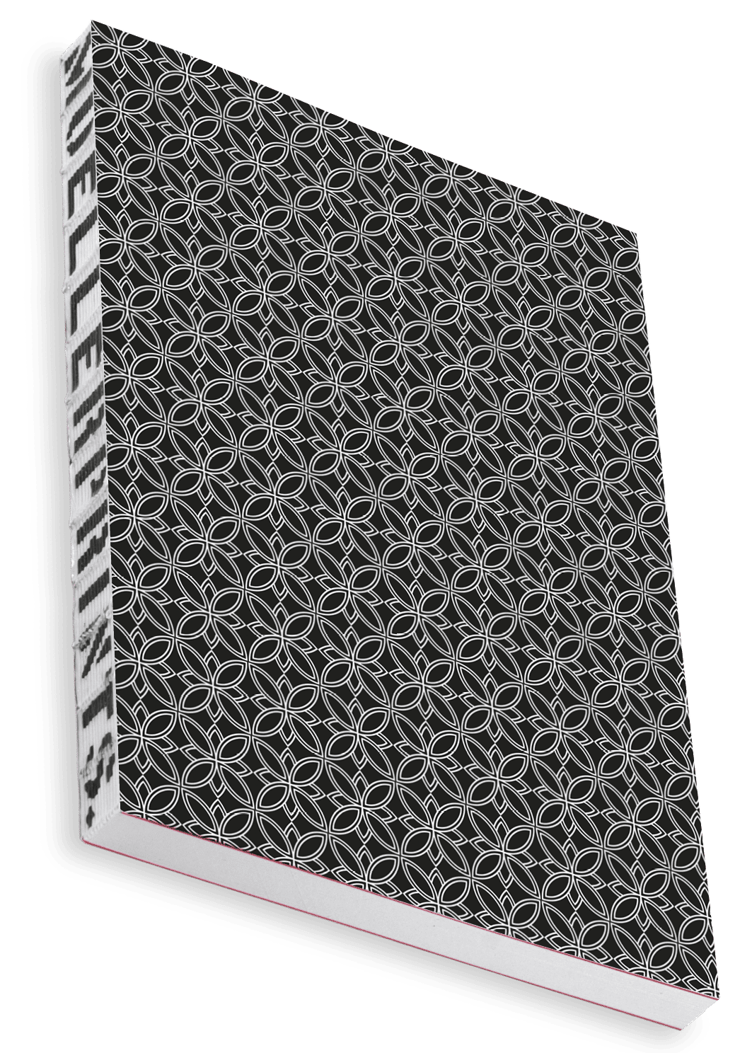 Alle Notizhefte sind von uns selbst gestaltet, gedruckt und in Handarbeit gebunden mit viel Liebe zum Detail. Das matte Recyclingpapier mit feiner Textur sorgt für angenehmes Schreiben und Skizzieren. Um den Inhalt liegt ein Matelbogen aus rot durchgefärbtem Papier, was einen dezenten, farbigen Kontrast zu dem ansonsten absichtlich, schwarz-weiß gehaltenen Design setzt. Das mit Singerstich-Heftung gebundene Heft ist sehr strapazierfähig, auch bei intensivem Gebrauch.