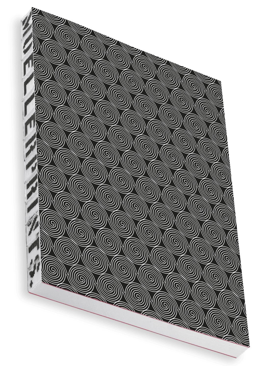 Alle Notizhefte sind von uns selbst gestaltet, gedruckt und in Handarbeit gebunden mit viel Liebe zum Detail. Das matte Recyclingpapier mit feiner Textur sorgt für angenehmes Schreiben und Skizzieren. Um den Inhalt liegt ein Matelbogen aus rot durchgefärbtem Papier, was einen dezenten, farbigen Kontrast zu dem ansonsten absichtlich, schwarz-weiß gehaltenen Design setzt. Das mit Singerstich-Heftung gebundene Heft ist sehr strapazierfähig, auch bei intensivem Gebrauch.